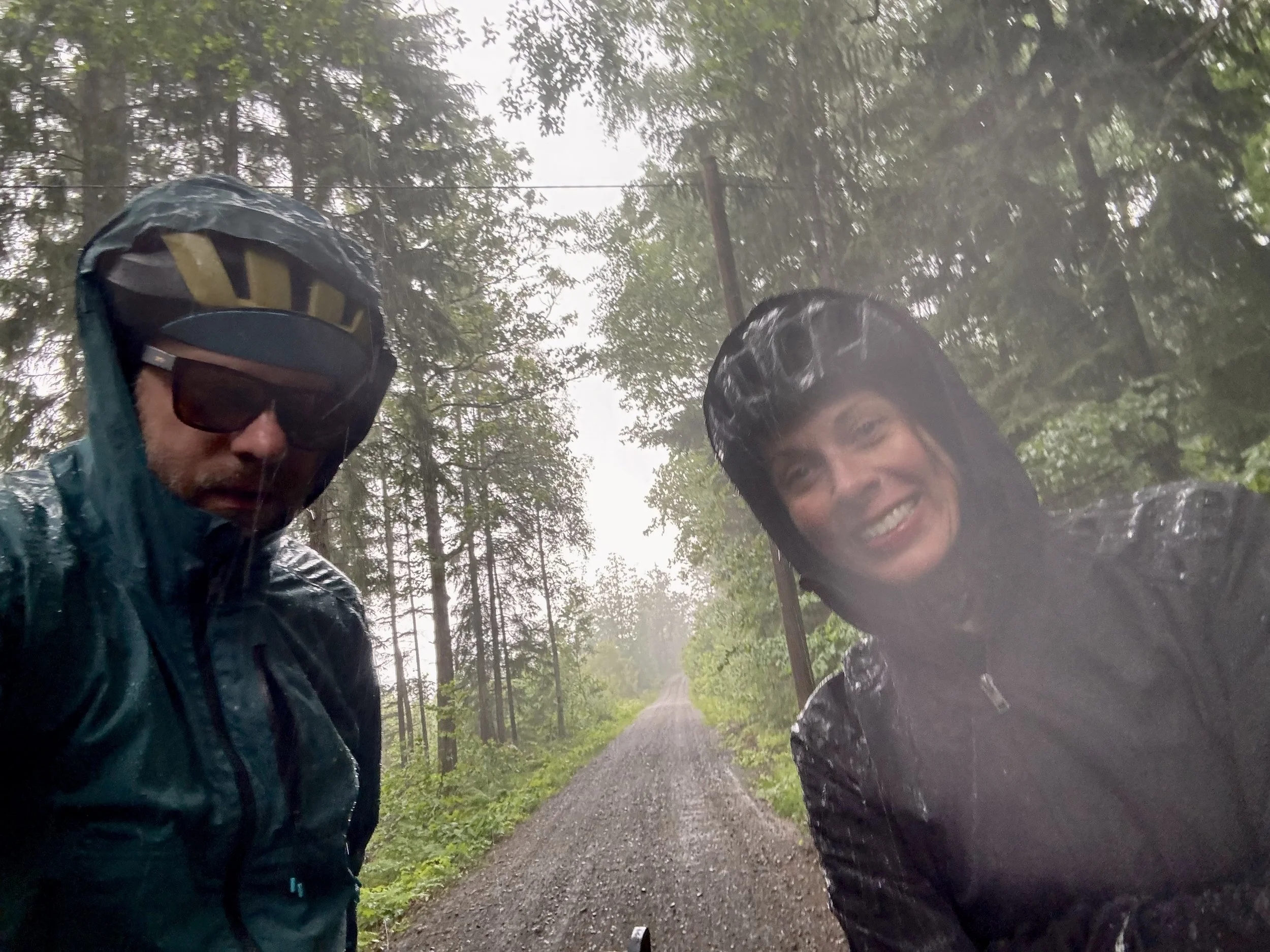 A large portion of the day was on beautiful gravel roads in the forest. With the rain, it made the bikes a bit messy, but we were having good time!