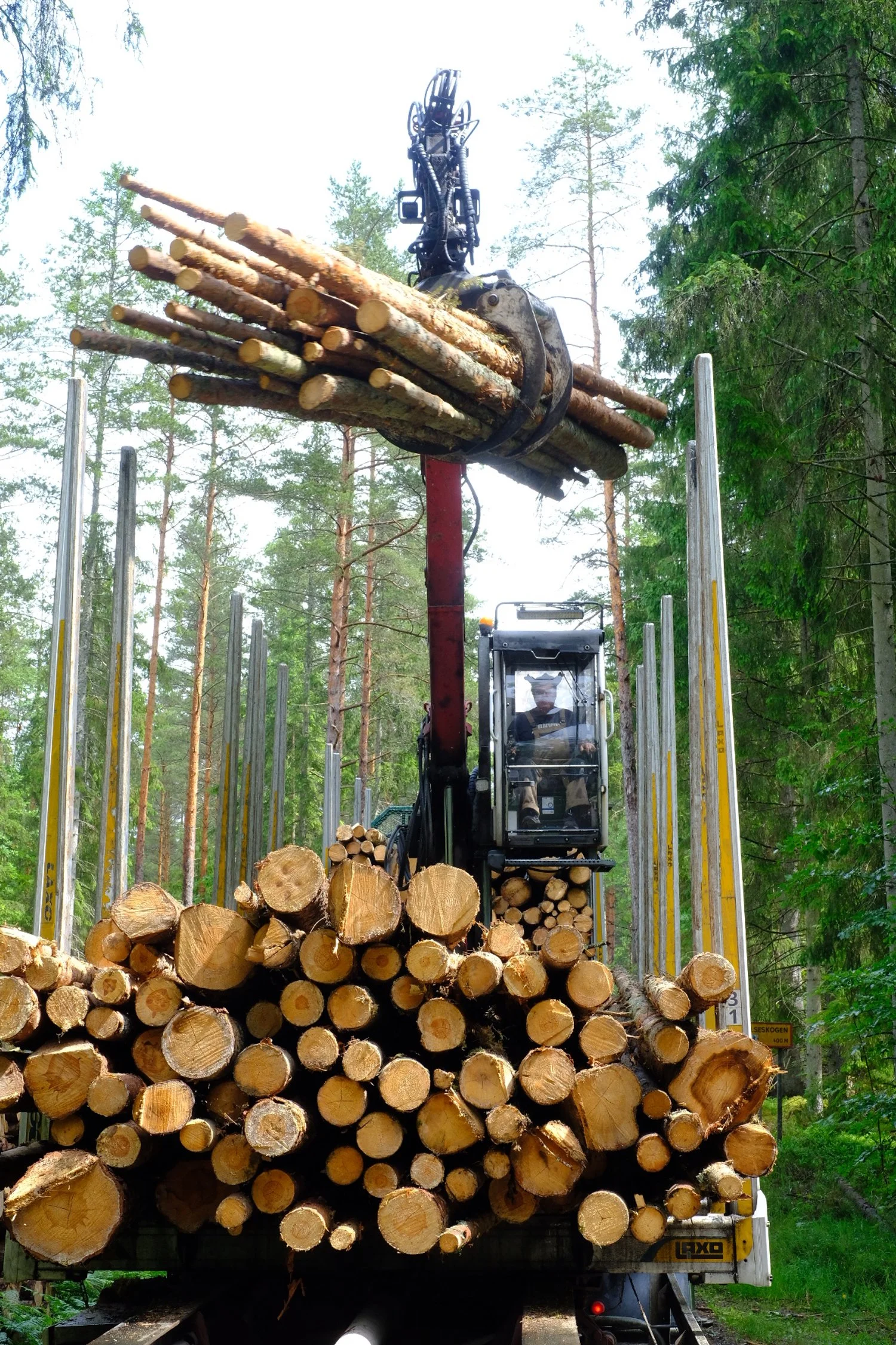 One thing we observed about Sweden is how well managed the forests seem to be. There is cutting and piling of smaller shrub trees, and we saw these labeled for us as bio-waste. We also saw a bio-waste plant near Linköping. Today we came upon a logging truck piling timber on a truck. He was taking up the entire dirt road, so we had to carefully navigate around him as he was working. It was impressive how well he could operate the arm of this truck, full of massive logs!