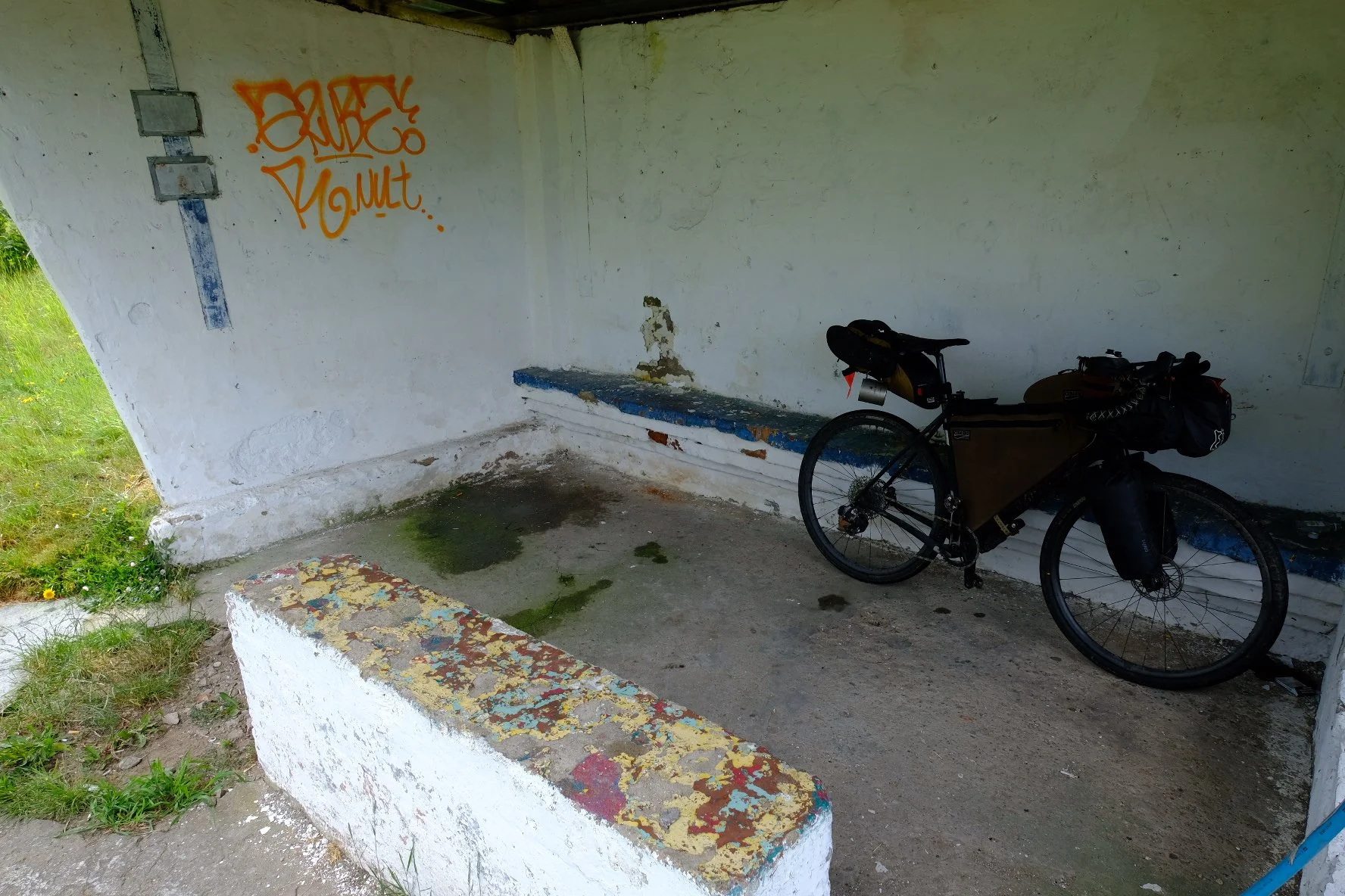 I tried outrunning a storm cloud and didn’t make it. I had to take refuge in a bus stop 2km outside of Gardna Wielka. I took the time to shoot some interesting photos. The place had character. I shot this first photo after the storm passed.