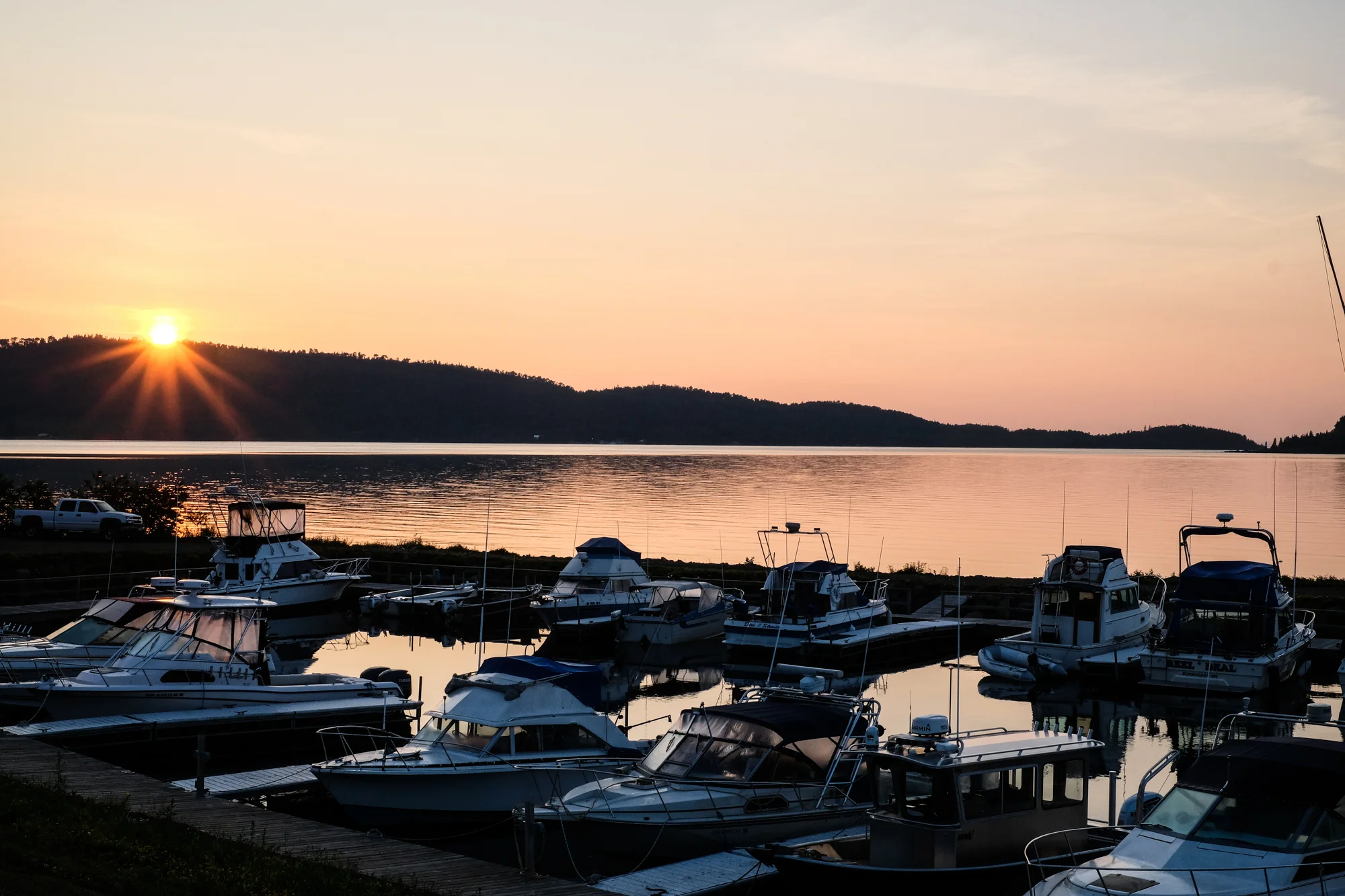 As we settled in for the evening black storm clouds rolled in. Thunder and lightning were hitting the hills on the other side of Highway 61, but we managed to only get a few sprinkles of rain. We got up just before sunrise as we had to check in at the boat landing at 6:30am. There was no time to make camp coffee, but I was able to capture a photo of the sunrise over Lake Superior.